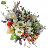 Buquê de noiva de orquídeas phaleonopsis pink e cáspias roxas, com laço de cetim.