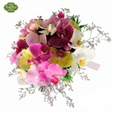 Buquê de noiva de callas vinho, orquídeas phaleonopsis pink e outras flores nobres.