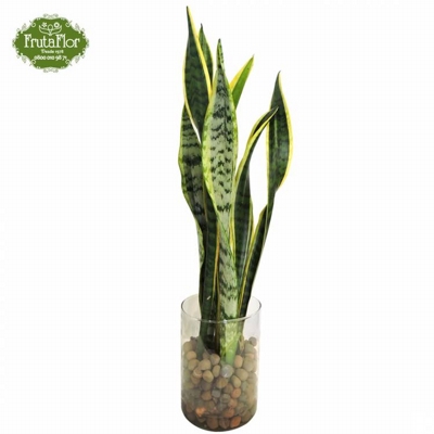 Espada de São Jorge, hidrocultura com pedras de argila expandida, em peça de vidro.