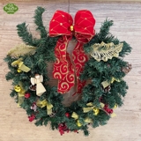 Guirlanda de natal com poinsettias, laço dourado e papai noel , enfeite de porta exclusivo, para decorar e deixar o ambiente mais natalino. Aproximadamente 35cm de diâmetro.