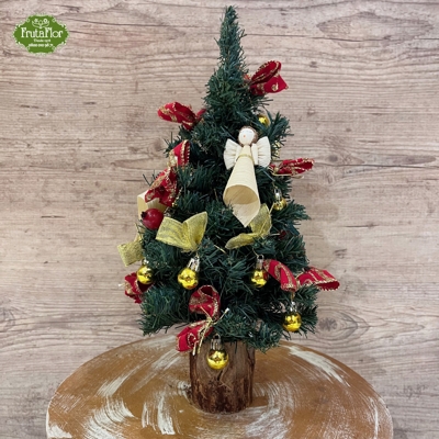 Enfeite de natal, mini árvore de natal com base de madeira.