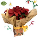 Poinsettia ou bico de papagaio, flor tradicional de natal, plantada e embalada para presente.